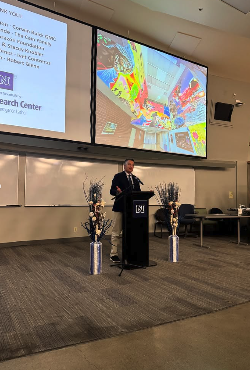 El impulso continuó con Osvaldo Jiménez-Estupinan, director en UNR de relaciones con la comunidad latina/hispana. Impartió una poderosa lección de historia, recordando a todos que las contribuciones de los latinos tanto a la UNR como a Reno habían sido ignoradas durante mucho tiempo. Habló de una nueva era de reconocimiento y describió el mural en sí mismo como una historia con múltiples capas sobre un pueblo inmigrante que lucha contra la adversidad, defiende sus derechos y se niega a ser silenciado. Concluyó con una verdad rotunda: los latinos siempre han formado parte del tejido de este país y, por fin, ha llegado su momento de reconocimiento.